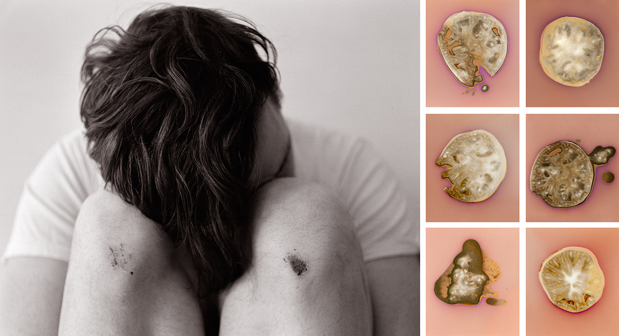 First Person, Plural is the story of addiction and recovery, family relationships and absences through photographs and photo-based experiments. Portraits, landscapes, and alternatively processed photograms—made using heirlooms and other precious objects as well as organic materials like tomato slices, onions, oranges, and common herbs—negotiate the duplicitous nature of familial relationships that are characterized by the long-term psychological struggles of a single family member and her addiction. My mother, my brother, my husband, me and others. Each image is a document of duration and of presence. Together, the alternating content creates a constantly shifting narrative—a system without a concrete beginning or end.